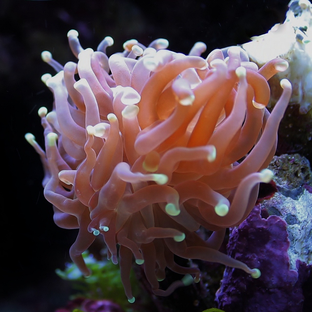 Euphyllia paraancora <br />Pochodzenie: Indonezja, Morze Czerwone, Papua Nowa Gwinea, Samoa, Wyspy Marschalla<br />Oświetlenie: średnie<br />Cyrkulacja: średnia<br />Rozmiar: M<br />Ciekawy koralowiec łączący w sobie dwie pożądane przez akwarystów cechy: jest ładny i dość prosty w hodowli. Toleruje różne warunki świetlne, nie lubi zbyt silnej cyrkulacji. W nocy, a niekiedy i w dzień może wysuwać polipy na dość znaczne długości- umieszczając go w akwarium należy zapewnić sporo miejsca tak, aby nie poparzył współmieszkańców. W głównej mierze "odżywia" się światłem, jednak karmiony raz-dwa razy w tygodniu mrożonkami (drobny plankton: zielony, czerwony, mikroplankton, pokarmy suche i płynne) rozwija się znacznie lepiej. Dodatkowo wymaga dodatku wapnia i strontu do wody.