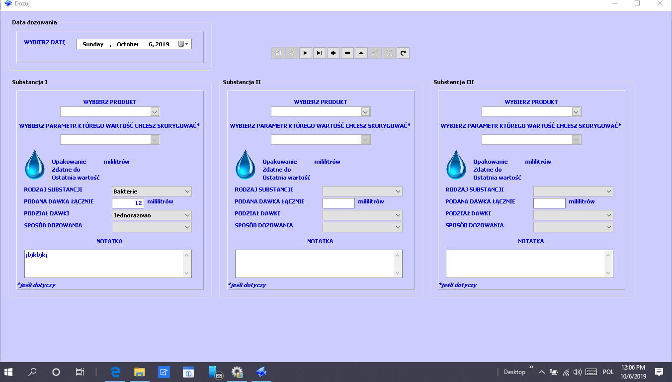 Program pozwala na zapisywanie do trzech substancji jednocześnie.