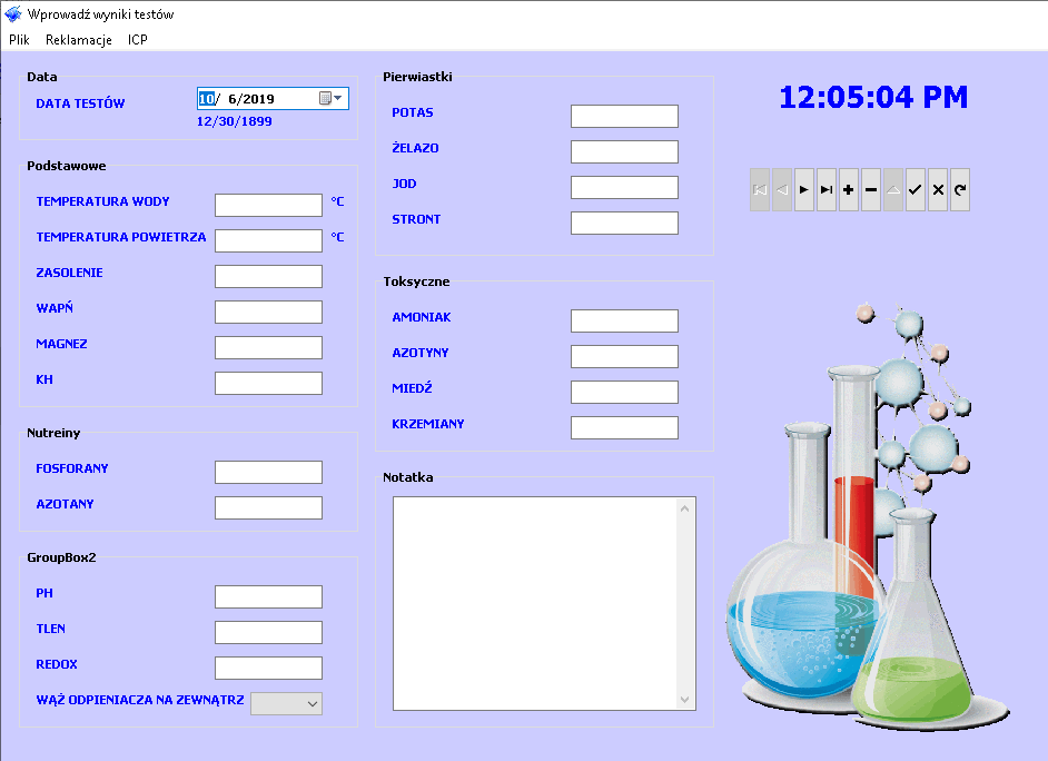 Obecnie tak wygląda dodawanie wyników wody. Trochę słabo. Trzeba popracowac nad tym. Osobne okno jest dla ICP.